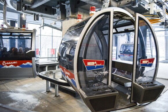 Каждая кабинка вмещает по 8 пассажиров. Время в пути – около пяти минут.